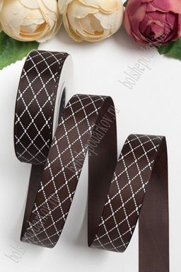 Лента репсовая 2,5 см*20 ярд с рисунком "Ромбик" SF-5930, шоколадный №136