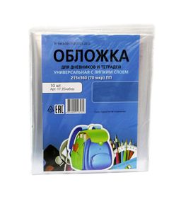 Набор обложек ПП 70мкм с липким слоем, для тетрадей и дневников, универс., 10шт. (17.35наб.) 215*360мм