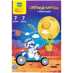 Цветной картон Мульти-Пульти с блестками А5 7л. 7цв. "Енот в космосе" (КЦб7А5_38716)