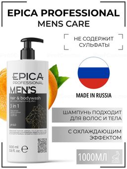 EPICA Professional Mens 3 in 1 Универсальный мужской шампунь для волос и тела, 1000 мл.