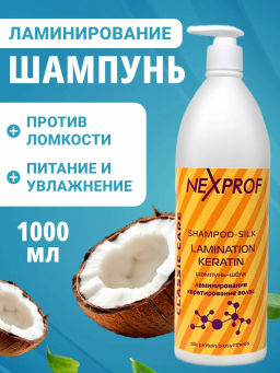 NEXXT Шампунь шелк ламинирование и кератирование волос 1000 мл./8