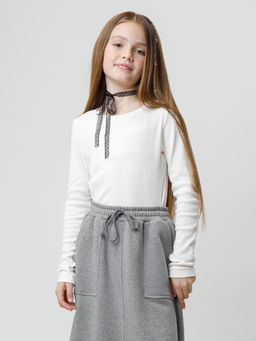 Белая футболка с круглым вырезом для девочек
