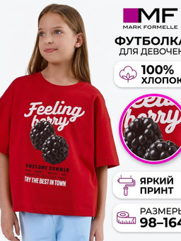 Футболка для девочек красная с надписью из хлопка