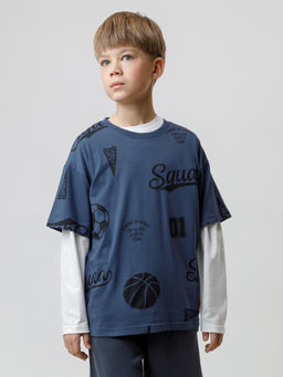 Детская темно-синяя футболка со спортивным рисунком Неожиданная скидка в корзине