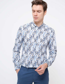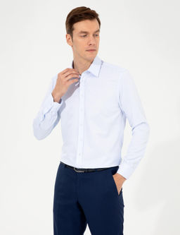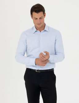 Синяя базовая рубашка зауженного кроя с длинным рукавом