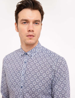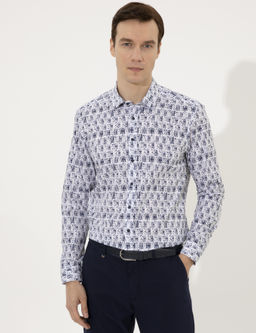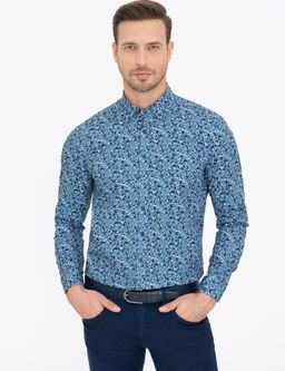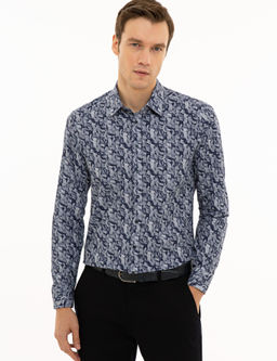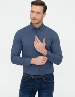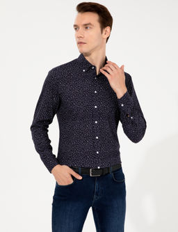 Темно-синяя рубашка классического кроя с длинным рукавом