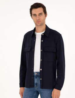 Мужская темно-синяя базовая рубашка с длинным рукавом