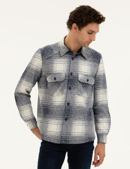 Темно-синяя рубашка-рубашка в клетку из смесовой шерсти