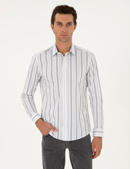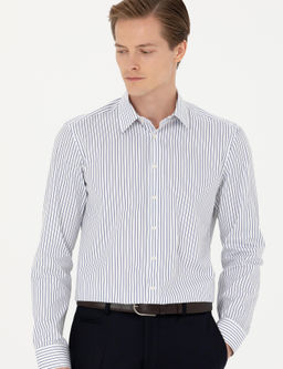 Темно-синяя приталенная рубашка в полоску с длинными рукавами