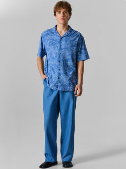 Брюки мужские синие с эластичным поясом льняные