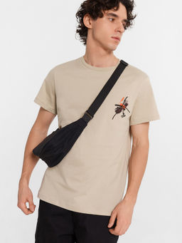 Футболка мужская бежевая с принтом и вышивкой на груди эвкалипт +печать 111773