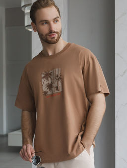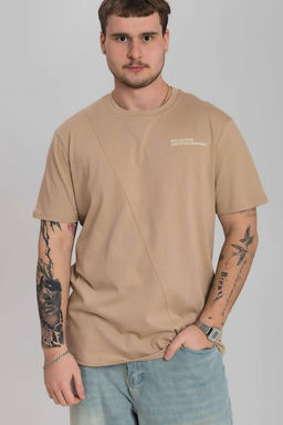 Футболка из кулирки с декоративной отстрочкой и принтом М125059Пе бежевый