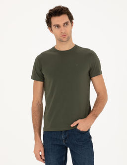Хаки Облегающая базовая футболка с круглым вырезом