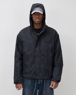 198-1 BLACK Куртка из эко-кожи мужская (50 гр. синтепон)