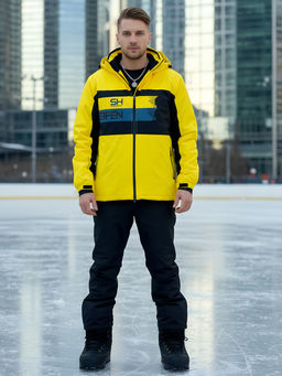 Горнолыжный костюм мужской зимний желтого цвета 370J