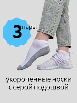 Цена за 3 пары. 3 ПАРЫ - Носки женские укороченные белые (серая подошва) с массажным эффектом