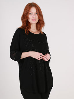 Блузка вечерняя из трикотажа больших размеров со стразами