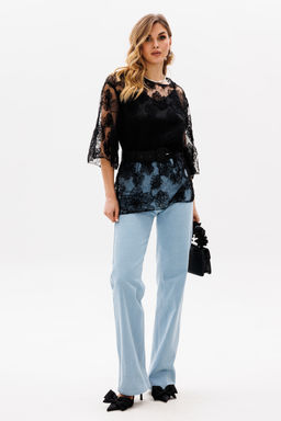 Блузка вечерняя из креп шифона с кружевом