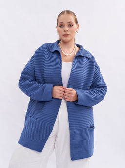 Кардиган вязаный шерстяной с карманами синий