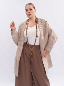 Кардиган вязаный оверсайз теплый бежевый меланж