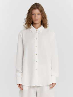 Рубашка прямая оверсайз со спущенным плечом белая