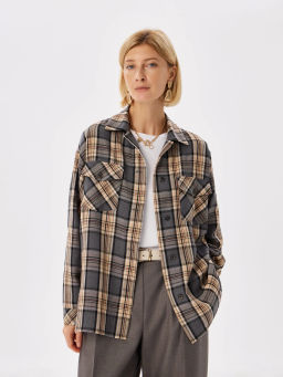 Блузка женская дл. рук. KATHARINA KROSS KK-B-0036F-FR-серо-бежевый, клетка