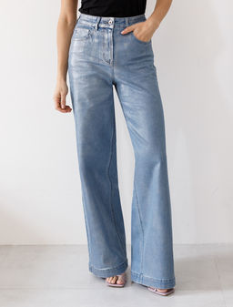 Джинсы трубы широкие с декоративной стиркой из эластичного денима