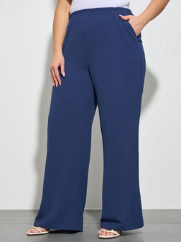 Прямые брюки с поясом на резинке из фактурного трикотажа в рубчик
