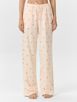 Брюки женские бежевые с принтом персиковая лапка персиковая лапка на жемчужном 182436