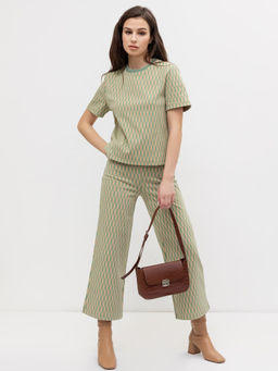 Брюки женские пыльно-зеленые с принтом в виде орнамента геометрия на шалфее 182446