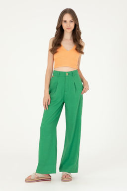 Женские зеленые брюки из плотной ткани Неожиданная скидка в корзине