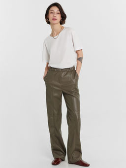 КОЖАНЫЕ БРЮКИ ЖЕНСКИЕ ХАКИ хаки 182536