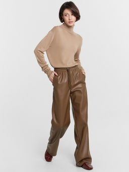 Брюки кожаные женские коричневые