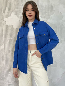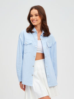 K11860 Джинсовая рубашка OVER SIZE ГОЛУБОЙ