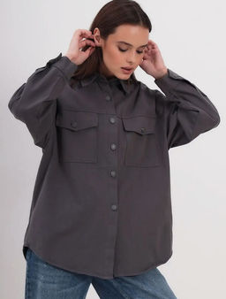 K11862 Джинсовая рубашка OVER SIZE ГРАФИТ