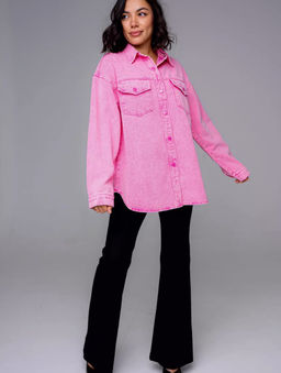 K12597 Джинсовая рубашка OVER SIZE РОЗОВЫЙ