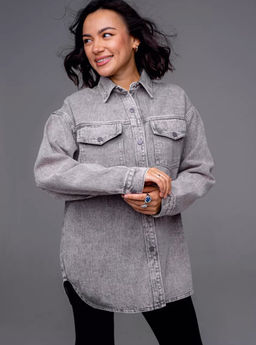 K12597 Джинсовая рубашка OVER SIZE СЕРЫЙ