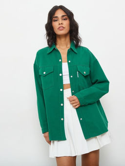 K10182 Джинсовая рубашка ЗЕЛЕНЫЙ