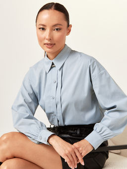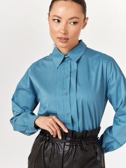 Рубашка блузка с пышным рукавом 100% хлопок голубой