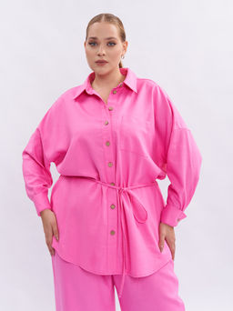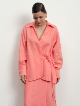 Рубашка льняная 80990 коралловая