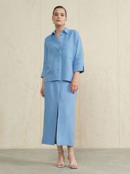 Рубашка льняная 80990 голубая