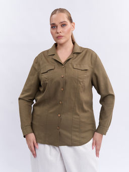 Рубашка льняная с фигурной линией низа салатовая