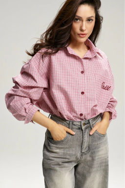 Рубашка в клетку с карманом Oversize Red