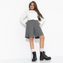 Шорты бермуды из костюмной ткани светло-серые
