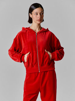 K13554 Толстовка с вышивкой OVER SIZE хлопок КРАСНЫЙ