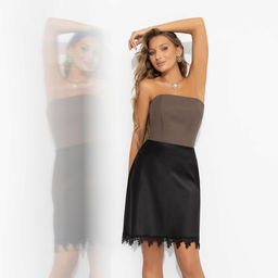 K13294 Юбка атласная с кружевом (на резинке) КОРИЧНЕВЫЙ