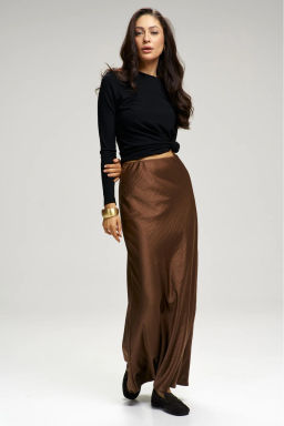 K11626 Юбка атласная макси на резинке КОРИЧНЕВЫЙ