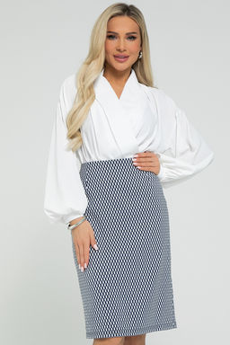 Белорусская юбка белая в черный горох прямая с разрезом спереди