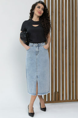 Юбка голубая из хлопка и вискозы летняя больших размеров