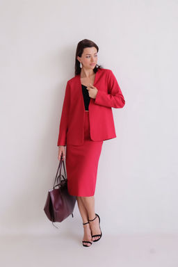K12596 Костюм: рубашка и юбка OVER SIZE, хлопок КРАСНЫЙ